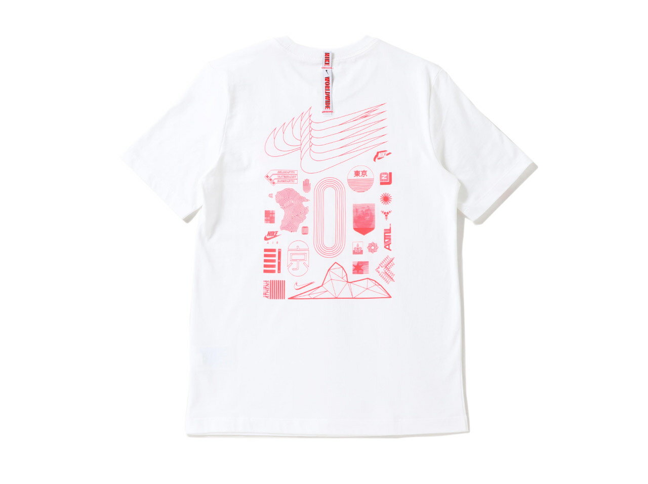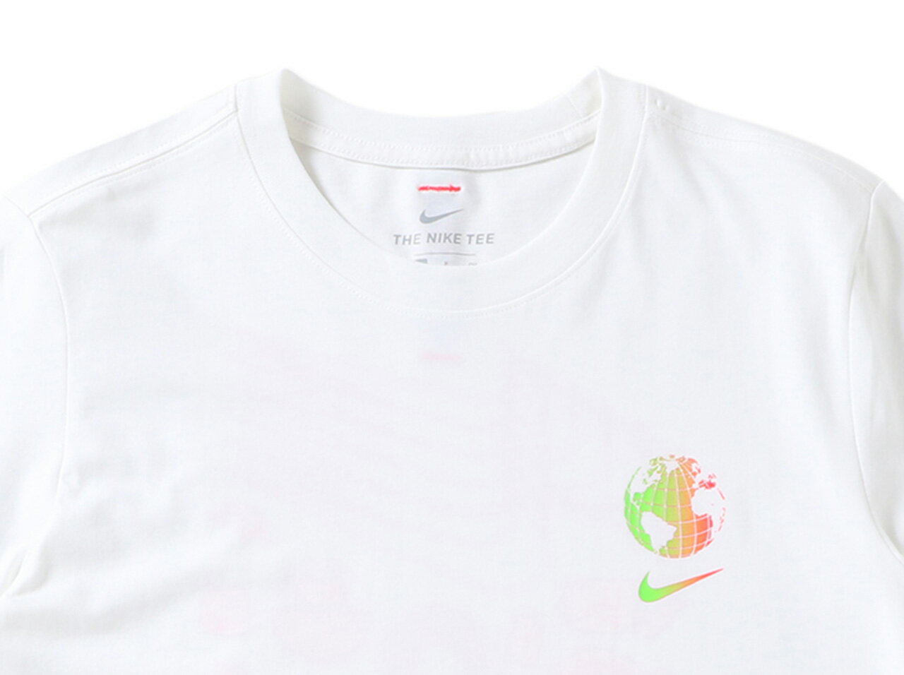 スポーツブランドの常に先頭に立つNIKEから、スポーツを通じて団結する世界を称えた一枚で背面のグラフィックを大胆にアピール。